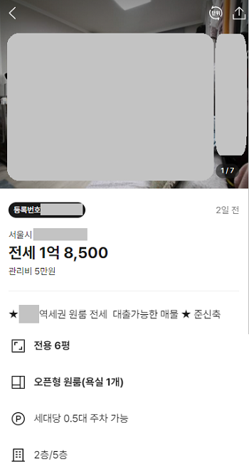 해당 매물이 전세로 185,000,000원에 올라와 있죠?