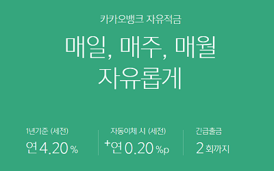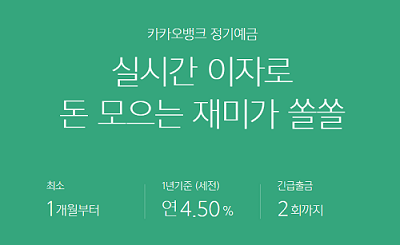 | 카카오 | 4.5% | 카카오뱅크 정기예금 | 100만 원 이상 | 1~36개월 |