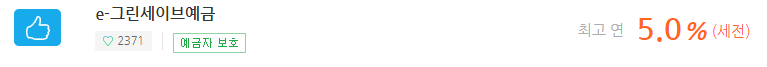 | SC제일 | 5% | e그린세이브예금 | 100만 원 ~ 5억 | 1~12개월 |