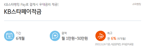 KB스타페이적금이 이율이 연 6%(6개월)으로 가장 높았습니다.
