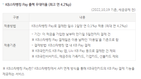 조건은 KB스타뱅킹 Pay로 결제 시 우대금리를 받으실 수 있어요.
