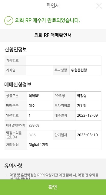 첫 외화 투자를 RP로 해보았는데요, 적금이나 예금에서 벗어나 새로운 금융상품을 직접 공부해본 좋은 경험이었습니다.