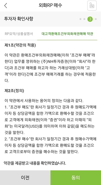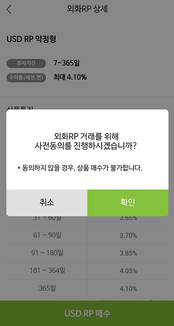저는 USD RP 약정형을 선택했구요, 가입하기 버튼을 누르니 사전동의를 진행해야 한다는 팝업이 뜹니다.