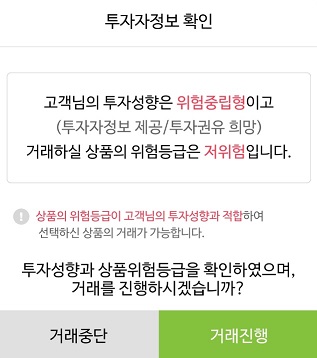 투자성향과 투자자정보 확인을 아래와 같이 하게 됩니다.