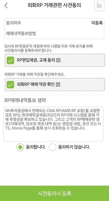이렇게 사전동의가 등록이 완료되면, RP 상품을 가입해도 되는지