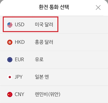 환전 통화는 미국 달러 통화를 선택해줍니다.