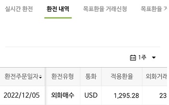 전 앞서 말씀드린대로 12/5에 1,295원 28전에 달러를 매수했답니다.