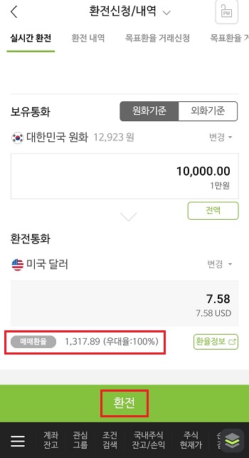 우선 외화 상품을 거래하기 위해선 환전부터 해야 합니다.