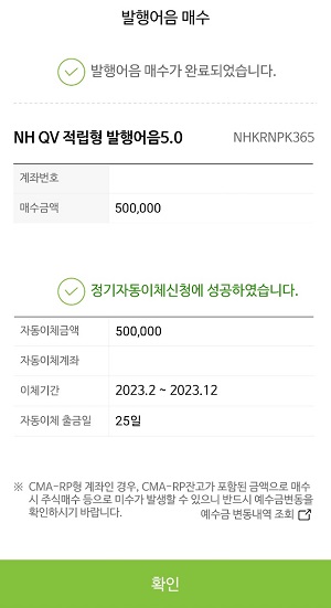 이렇게 발행어음 매수와 정기 자동이체 신청도 완료했습니다♥