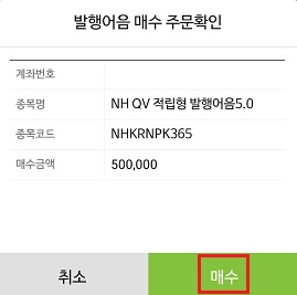 그 다음, 두 번째에 있는 <NH QV 적립형 발행어음5.0> 매수 버튼을 눌러줍니당!