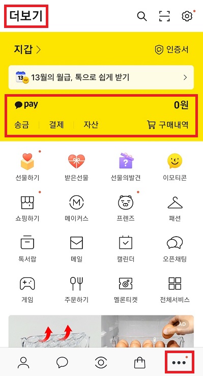 더보기 페이지에서 카카오페이를 확인하실 수 있습니다!