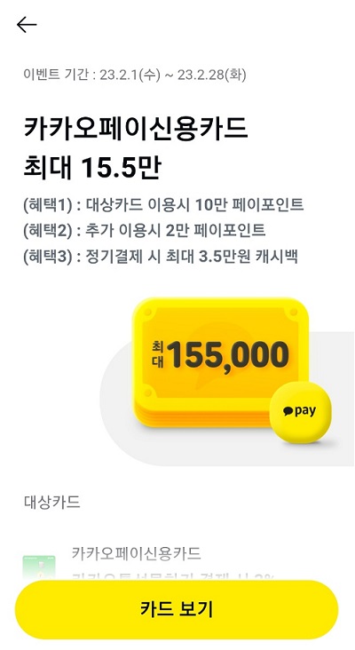 혜택1. 카카오 페이 신용카드 이용 시, 10만 페이포인트 캐쉬백