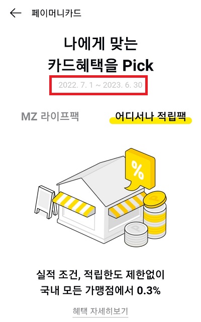 우선, 페이머니카드 혜택은 시즌제로 운영되고 있고