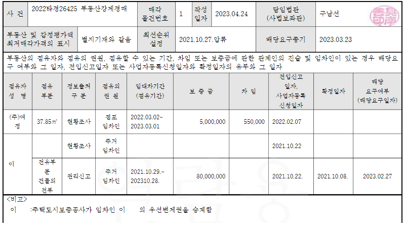 뭐가 되었든 해당 경매 사건은 보증금 8천만 원을 이OO씨가 받아야만 끝나는 게임(?)입니다.