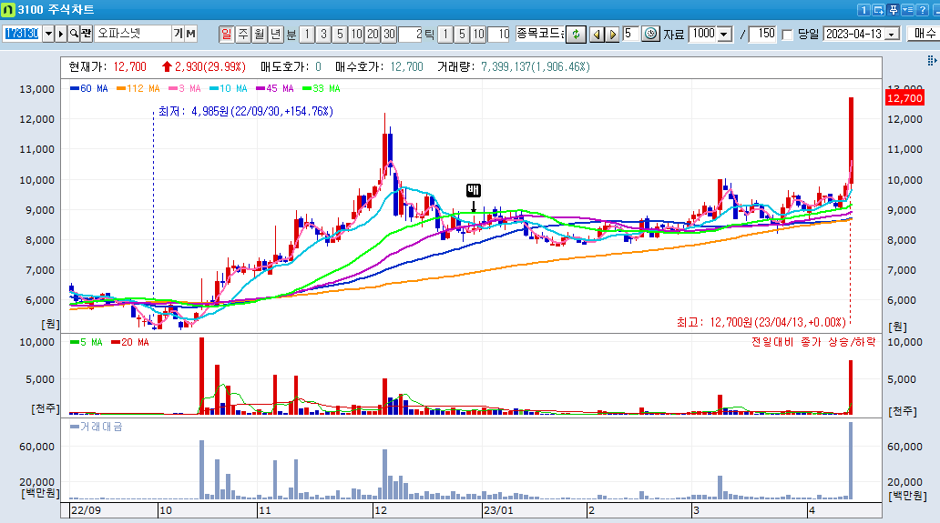 위 차트는 오파스넷이라는 종목입니다.