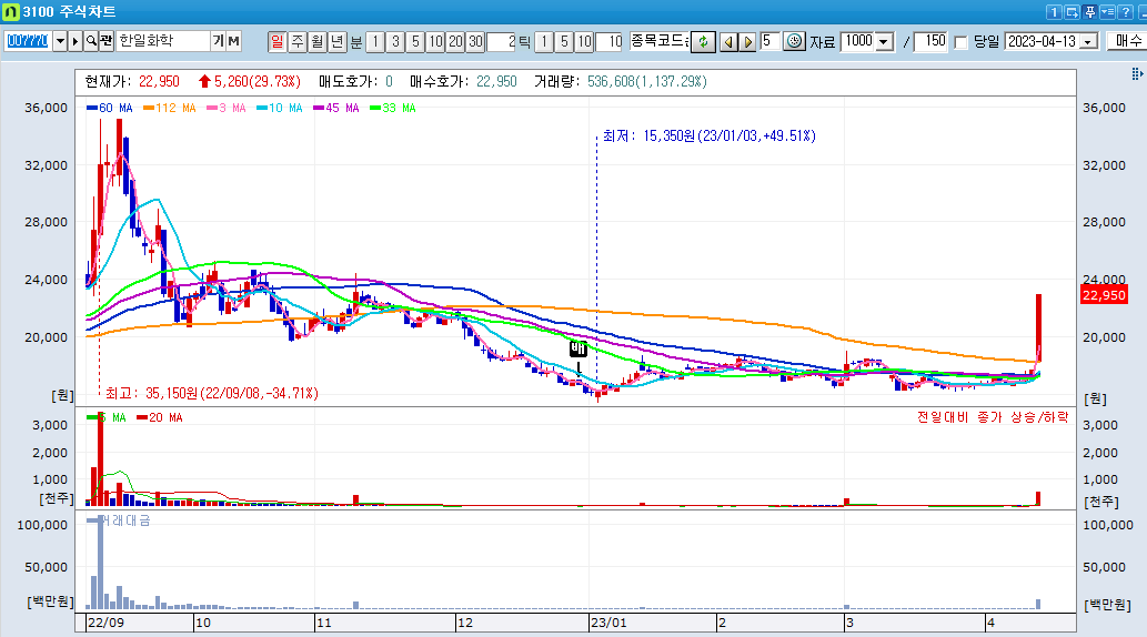 두 번째로 돌아볼 종목은 바로, 한일화학이라는 종목입니다.