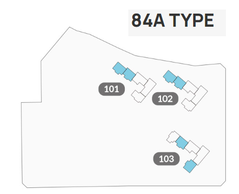 84A 타입은 101동에 두 라인, 102동에 두 라인, 103동에 두 라인에 해당하네요.