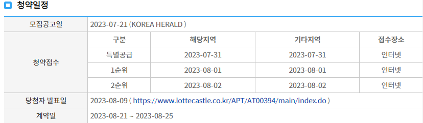 저는 특별공급대상자에 해당해서 특별공급 청약접수일인 2023.07.31에 접수를 해볼 계획입니다 :)