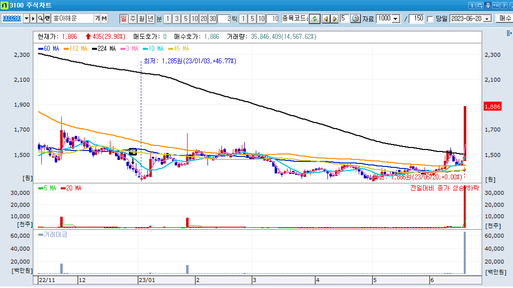 그러다가 며칠 요동을 치더니 오늘 상한가를 기록했네요.