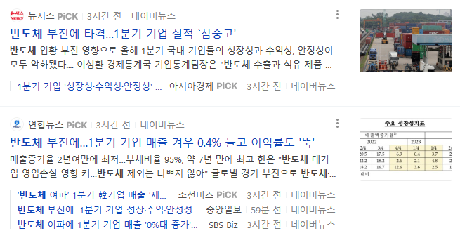 그런데, '반도체' 키워드로 검색을 해보니 그렇게 좋은 소식은 없더라구요.
